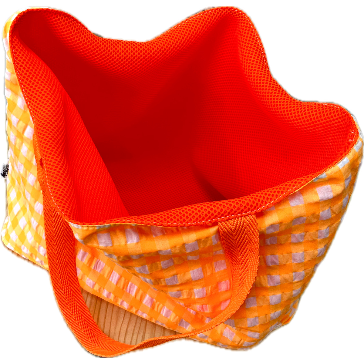 Bolsa de Playa Reversible Vichy Naranja Flúor | IsiBabyWorld