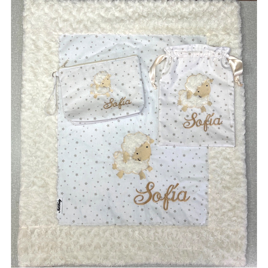 – Neceser con ovejita bordada y nombre