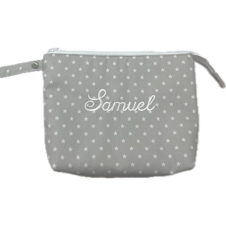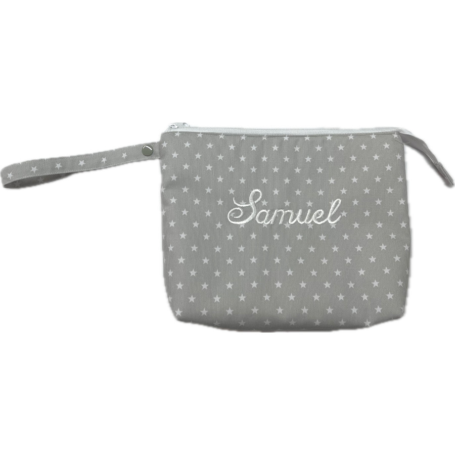 Neceser estrellas gris con nombre del bebé